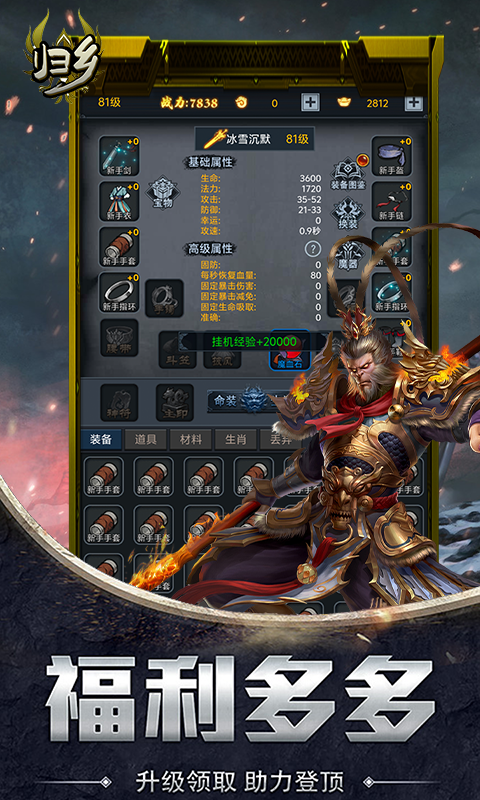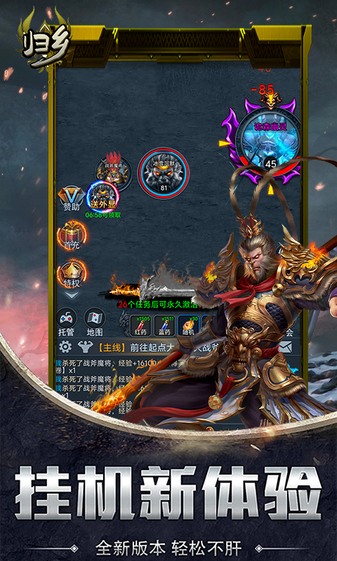 《归乡》是一款以放置类RPG文字挂机为核心玩法的游戏,提供了丰富多样的BOSS战斗体验,让玩家沉浸在不断挑战与征服BOSS的乐趣中。游戏中的所有装备都可以通过打怪获得,无需GM干预,玩家可以自由搭配神器和魔器,即便是小怪也有可能掉落顶级装备,为玩家提供广泛的装备选择和搭配乐趣。